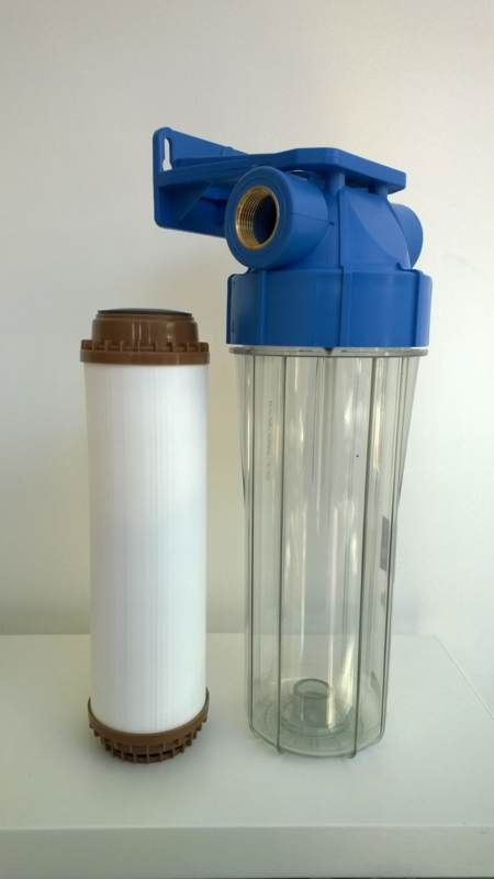 Porte Filtre 10" Opaque - Entrée laiton 3/4 avec filtre sediment de 5µPorte Filtre 10" Opaque - Entrée laiton 3/4 avec filtre sediment de 5µ.